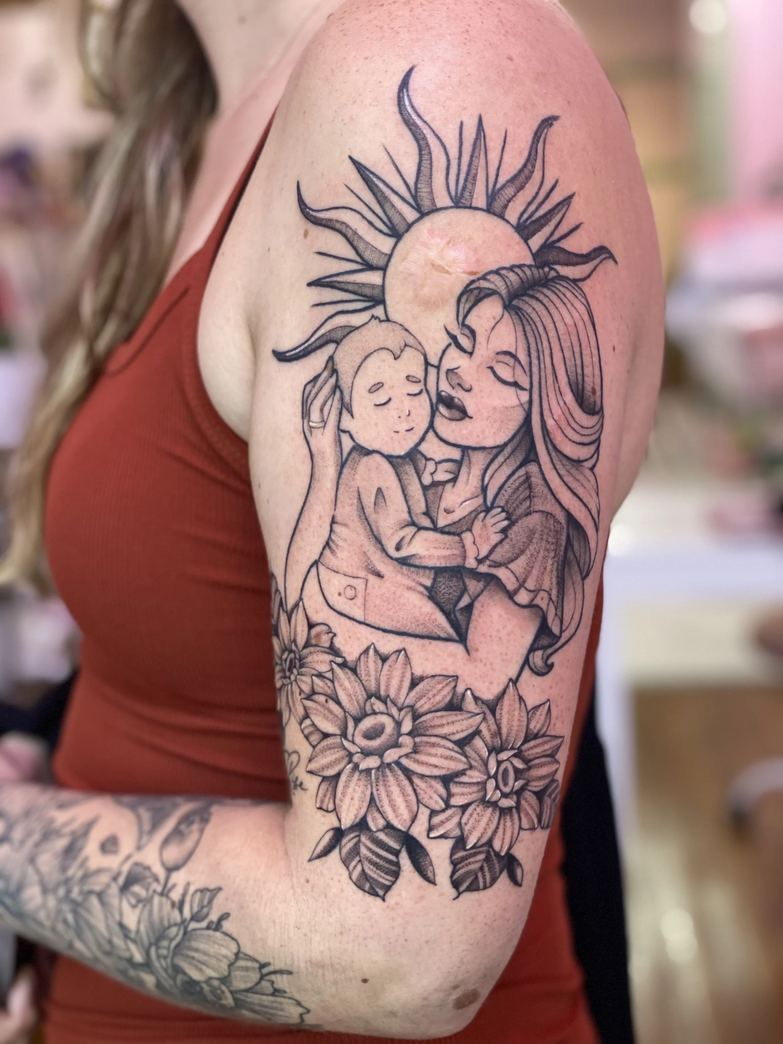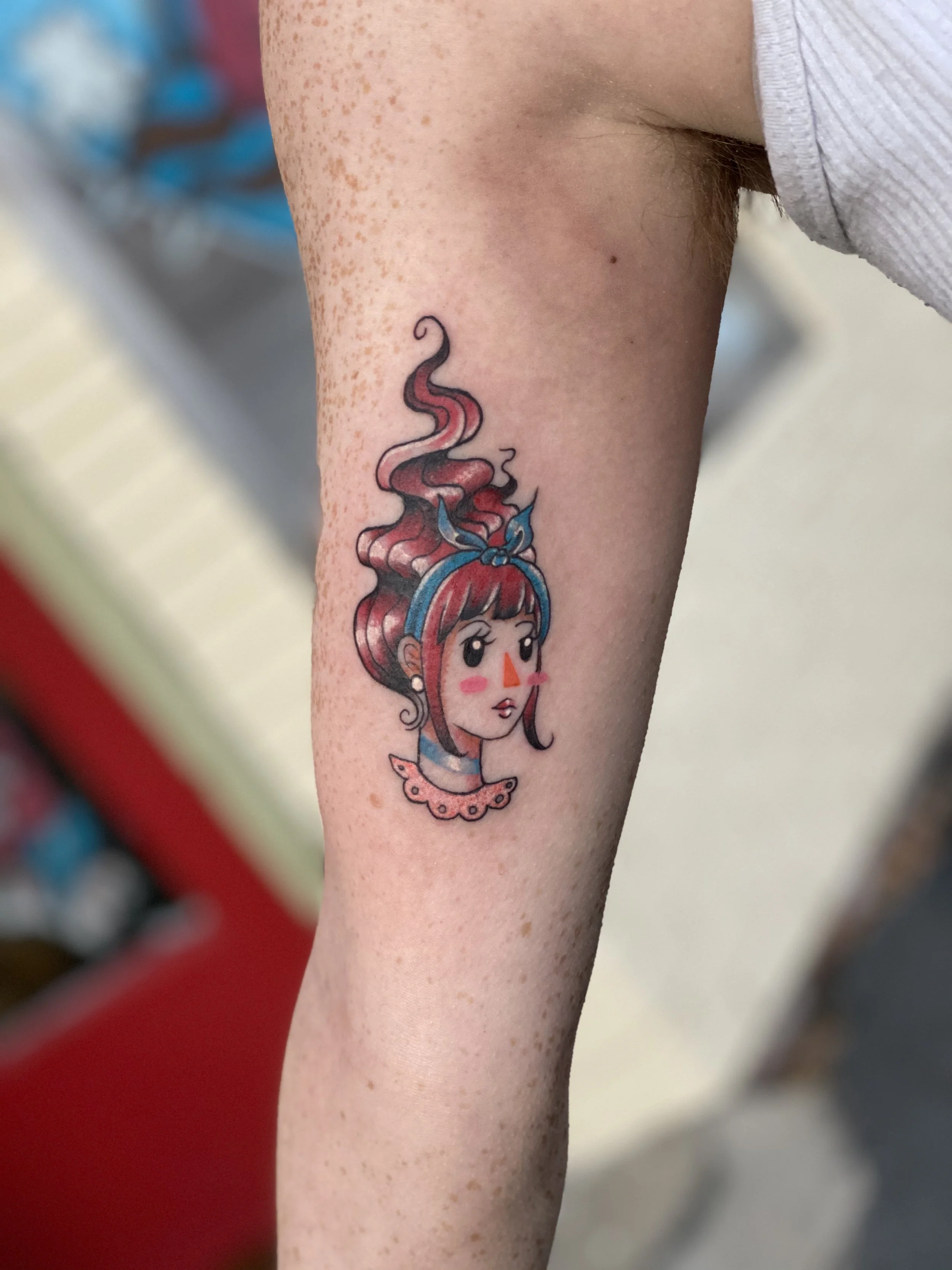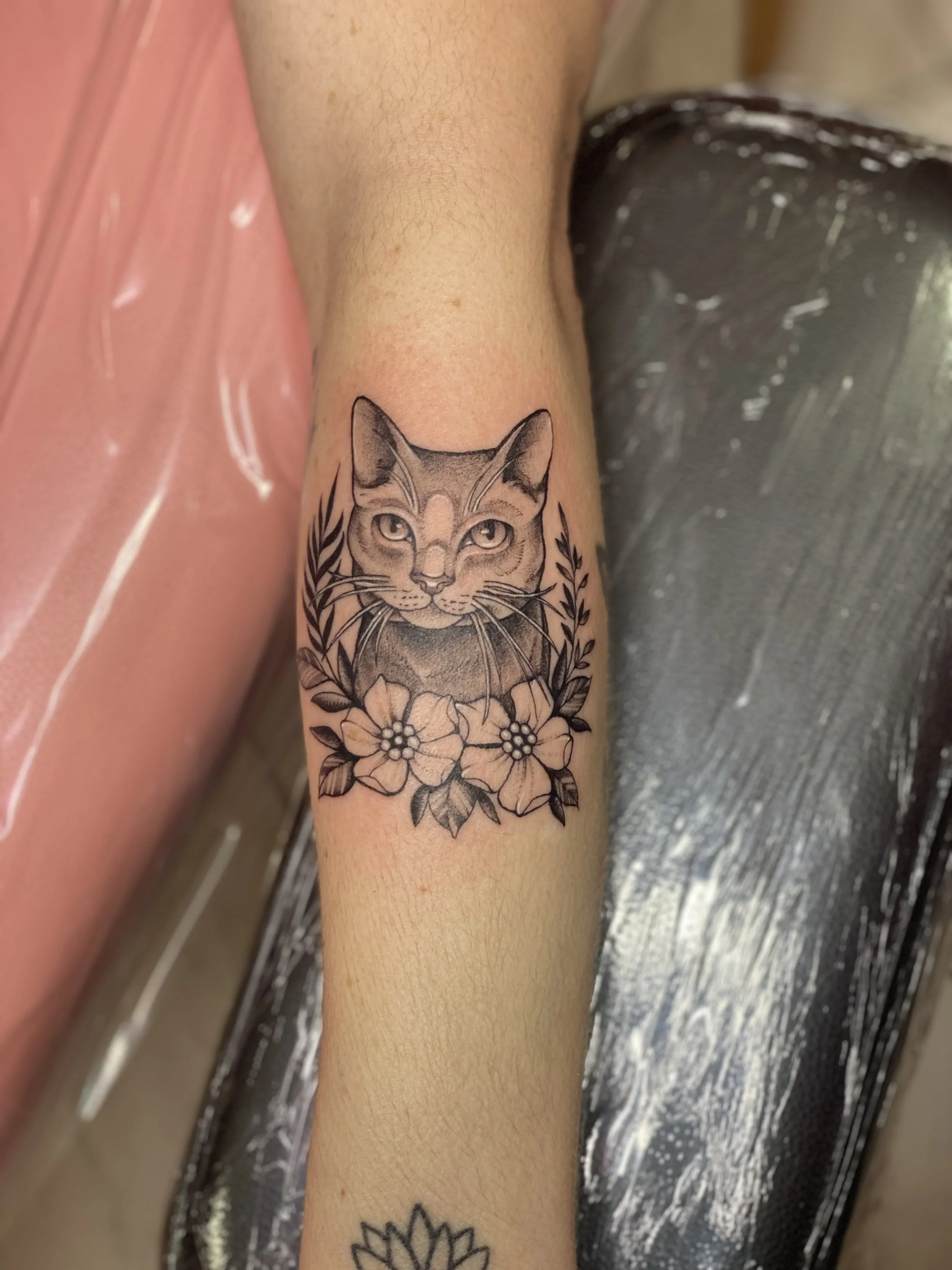 Dani goes by the playful moniker Purrsimmon, combining the "purr" of a cat with their favorite autumn fruit, the persimmon. Specializing in anime, cartoons, lady faces, florals, and more, Dani collaborates closely with clients to create one-of-a-kind tattoos inspired by their shared vision. They view tattoos as an intimate experience, often forging lasting friendships with clients.